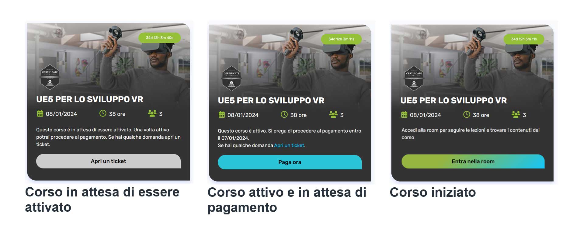 - Pagamento: Il prezzo totale del corso.